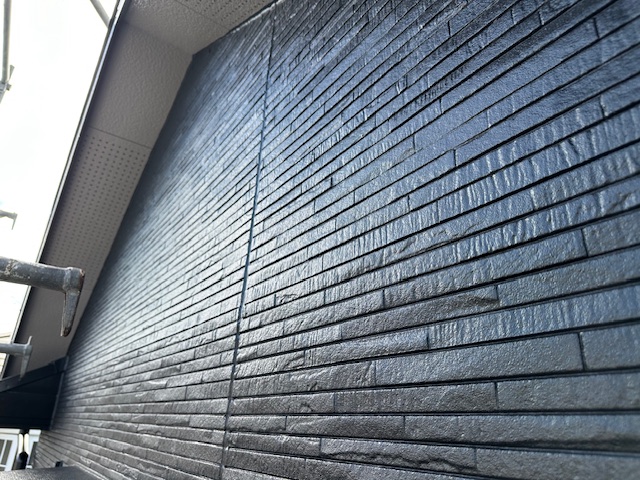 屋根外壁塗装工事現場は、「調色カラー、5部艶ブラック」が塗布されました… -