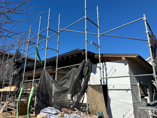 屋根ガルバリウム鋼板工事が着工しました。 足場が組みあがり、今回… -