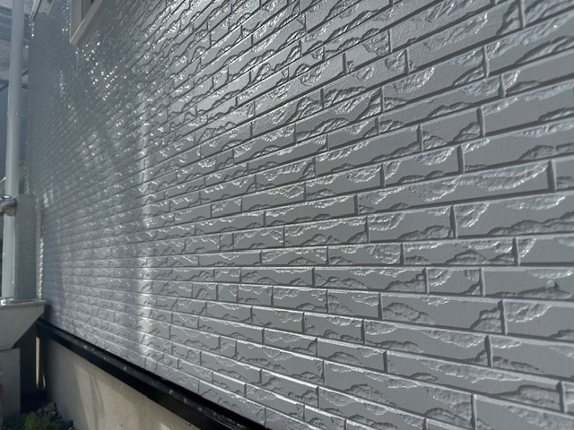 帯、幕板部・窓枠化粧材・破風・水切り部にはブラックが採用されていますので、シマリも出ています。