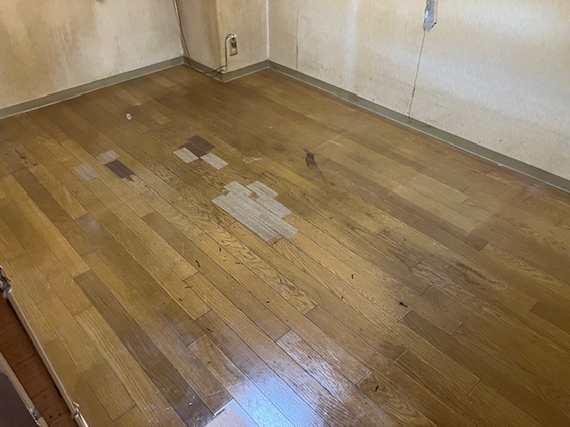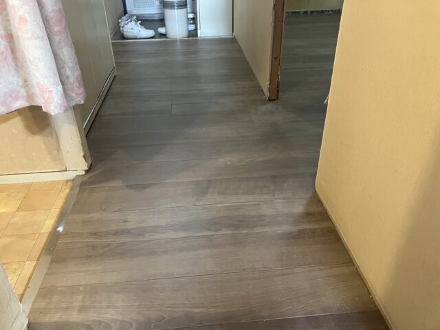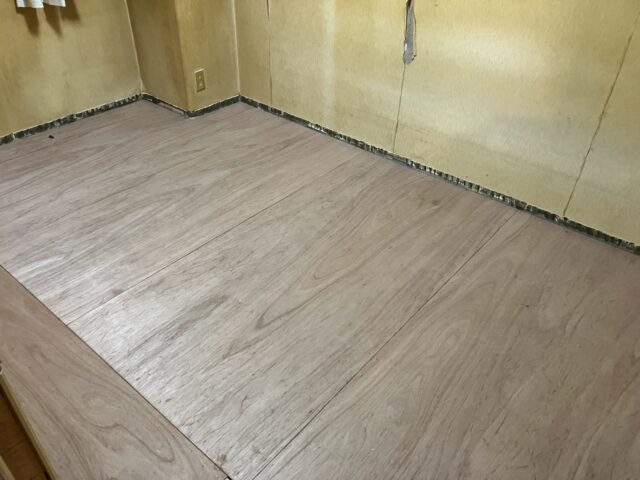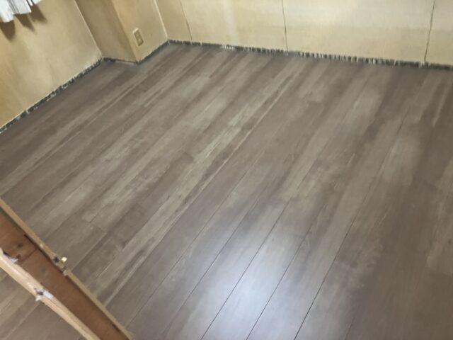 合板の捨て貼りを行い、仕上げ材のフローリングが貼り込まれました。