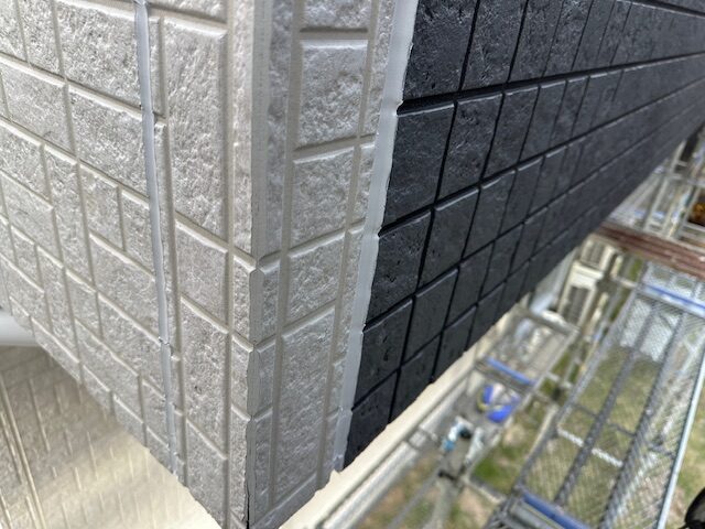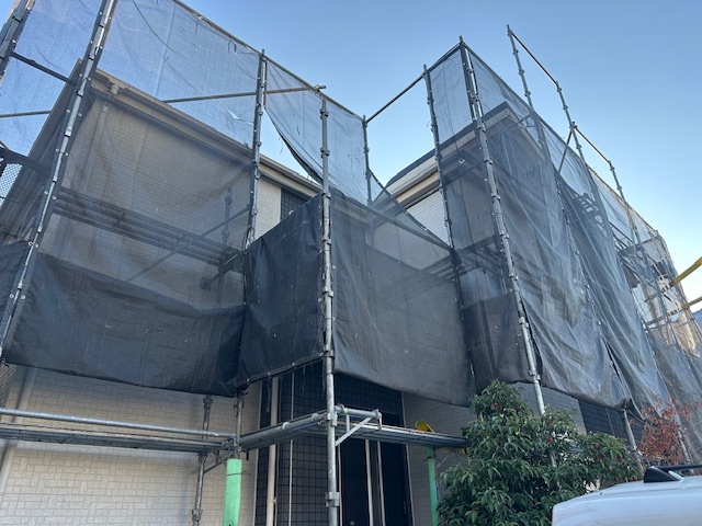 屋根・外壁塗装工事が着工し、外装の高圧洗浄と目地改修工事が終わりました。