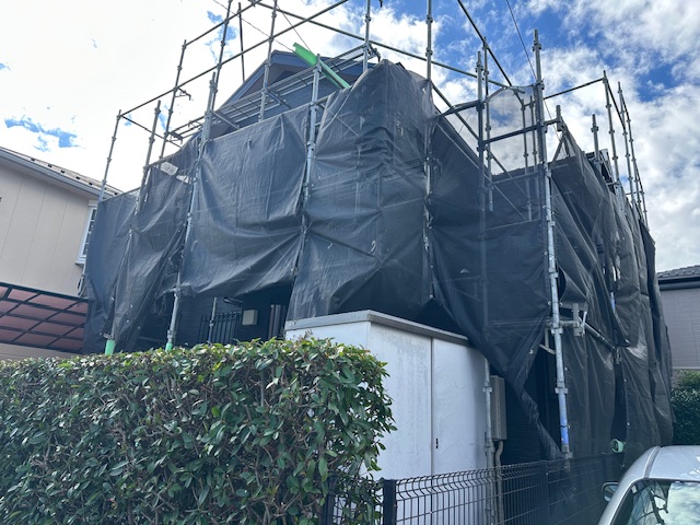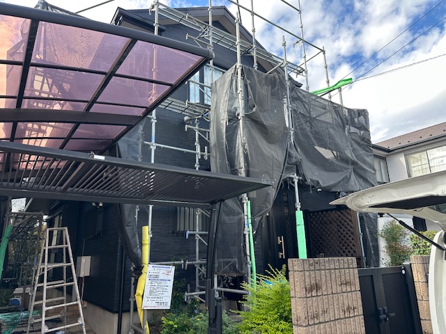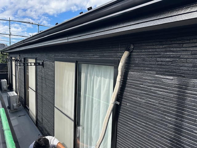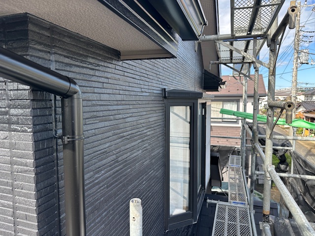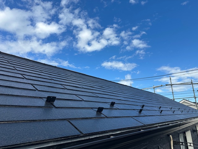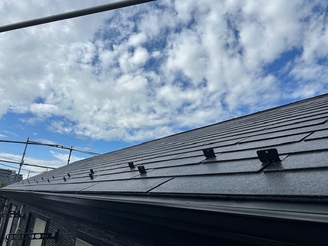 屋根外壁塗装工事現場は、「調色カラー、5部艶ブラック」が塗布されました。