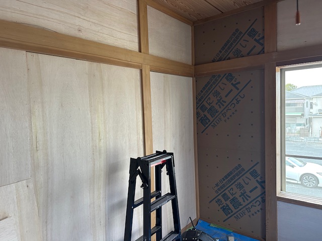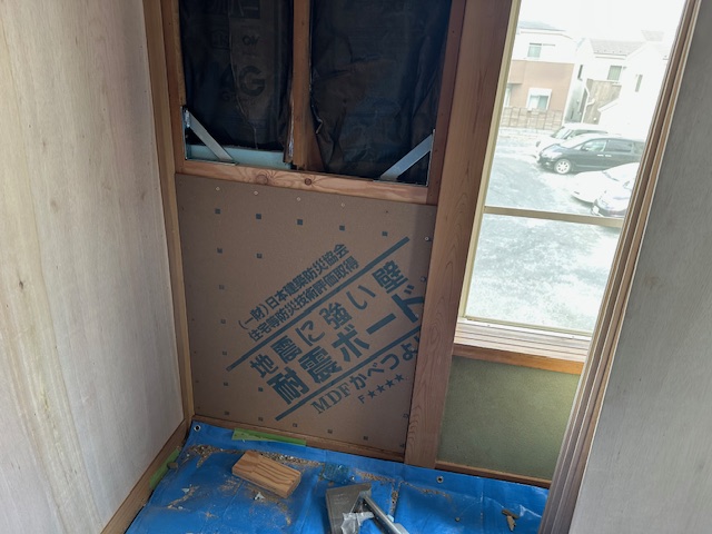 耐震補強壁面はクロス仕上げになりますので、廻りの内壁も同仕様のクロス仕上げの為に