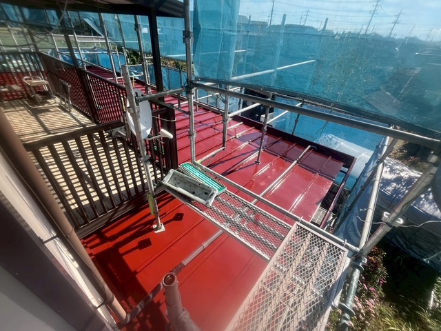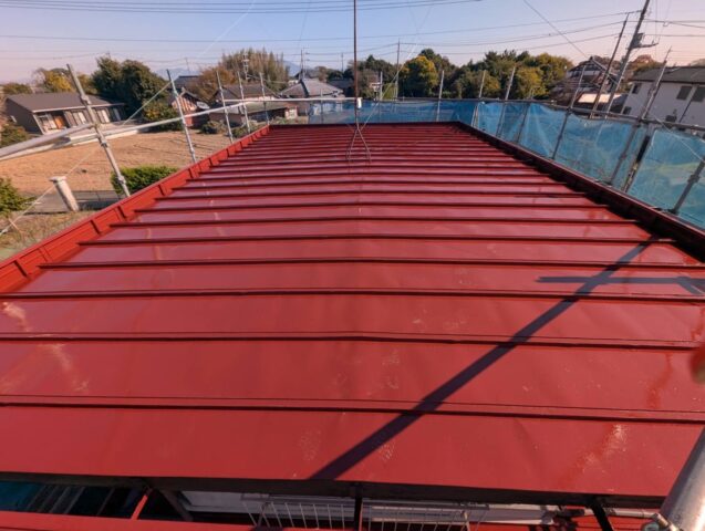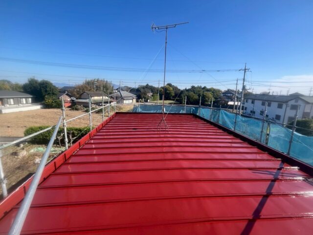金属屋根の塗装になりましたが、下地補修には念入れをして行いました。