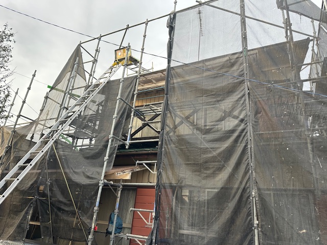 内外装リフォーム工事現場は、大屋根の屋根改修工事となっております。