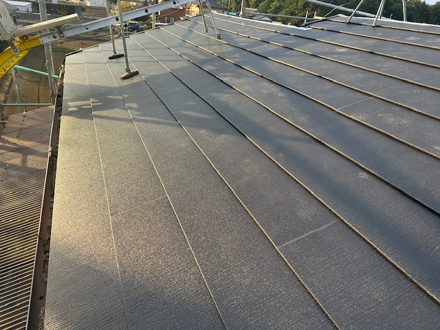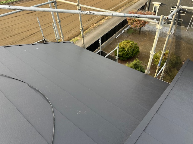 既存の瓦を解体撤去し、野地板・ルーフィング・IG工業のスーパーガルテクト施工が行われています。