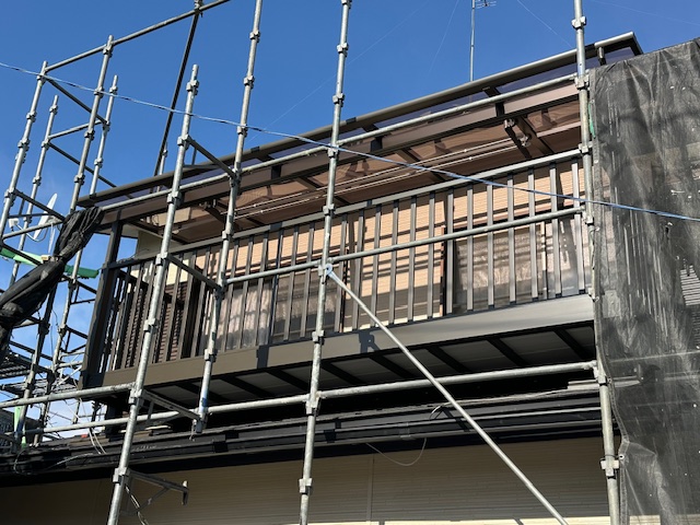 内装工事が完了し、外装工事は金属サイディング施工が進んでおり