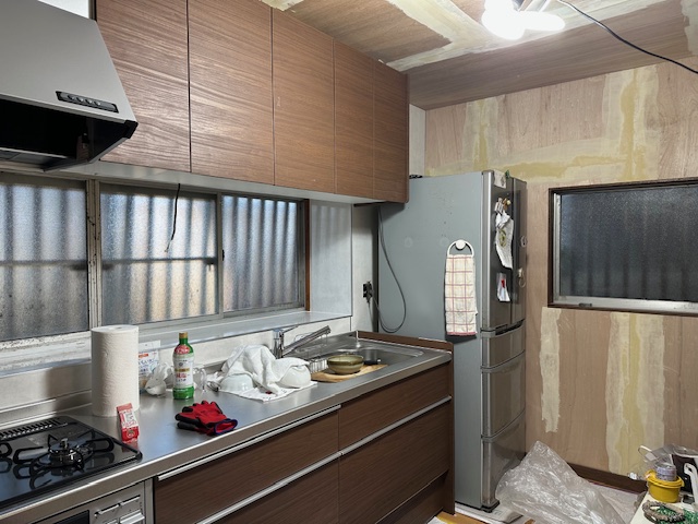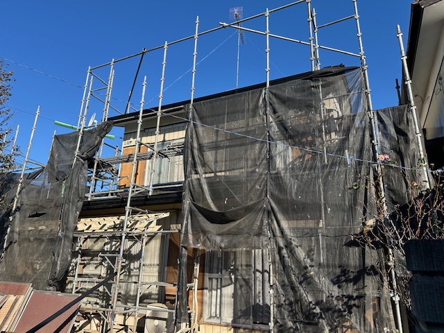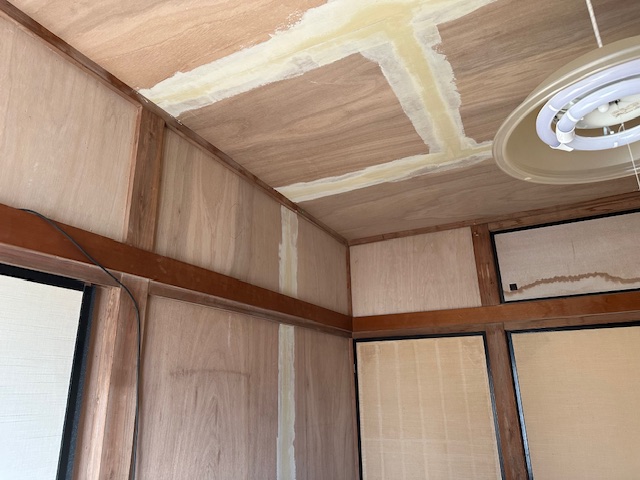 内外装総合リフォーム現場は、木工事・設備工事が終わり、クロス工事に入っています。