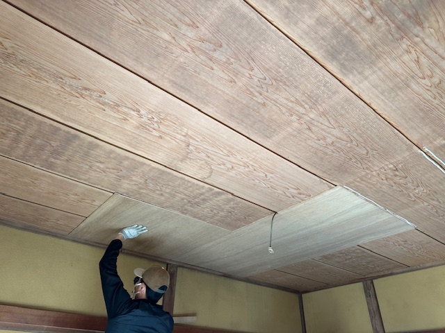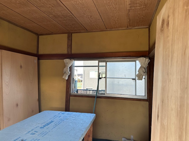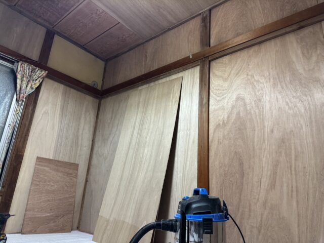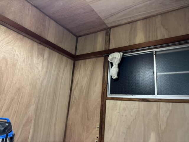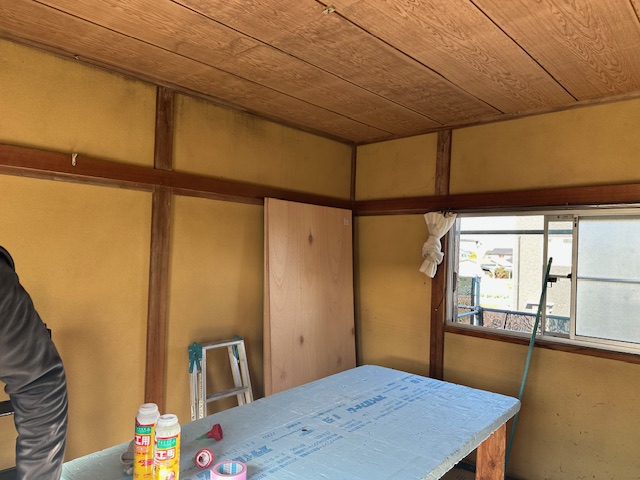 先ずは2階和室部屋の壁、天井のクロス施工になります。
