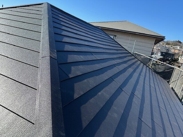 古民家再生リフォーム工事現場は、屋根のガルバリウム鋼板工事が完了しました。