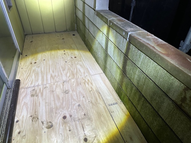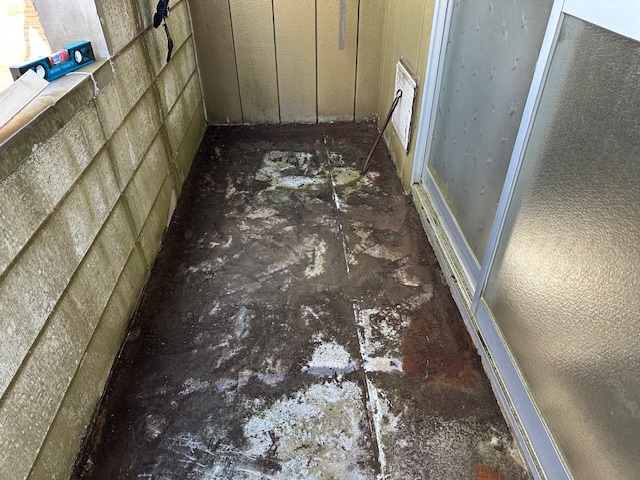 本日は雨漏れがあるベランダの床に下地木工事を行い、ウレタン防水工事を施します。