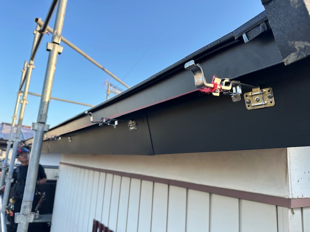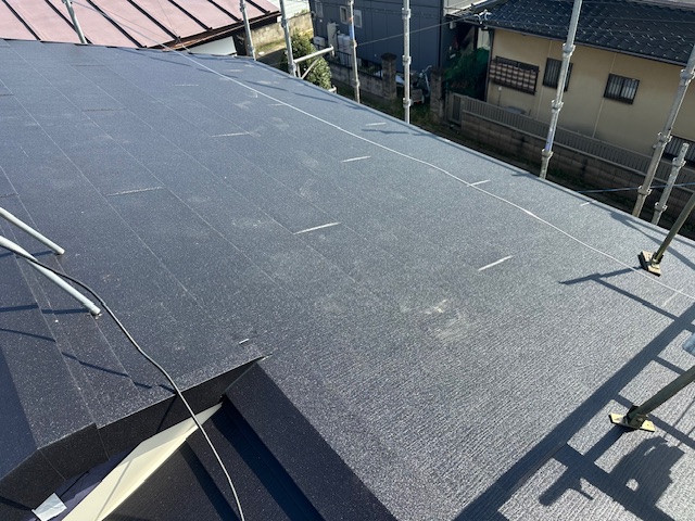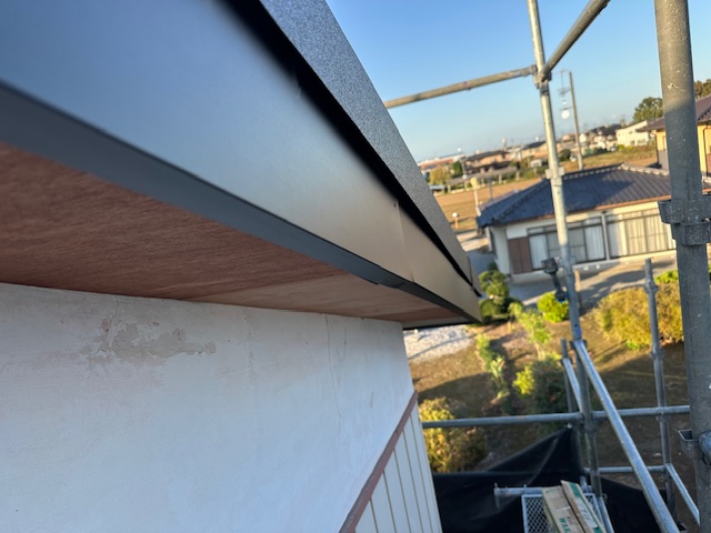 屋根改修工事ガルバリウム鋼板仕様が終わり、本日は軒天補修後に、痛んでいた木部破風部に