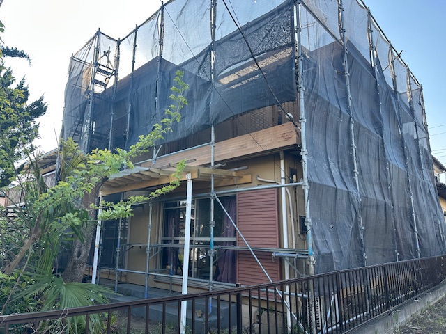 先ずは足場が施工され、既存屋根材の解体工事からスタートです。