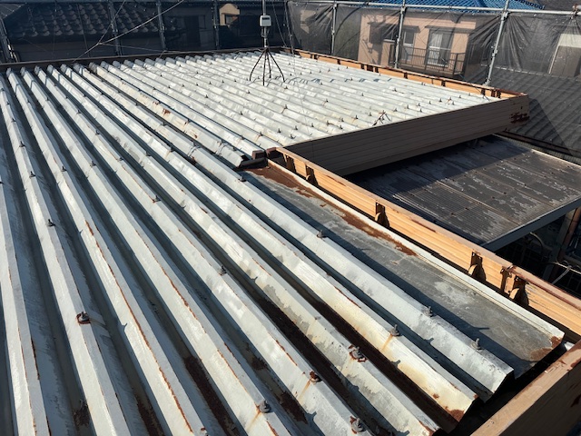屋根ガルバリウム鋼板工事が着工しました。